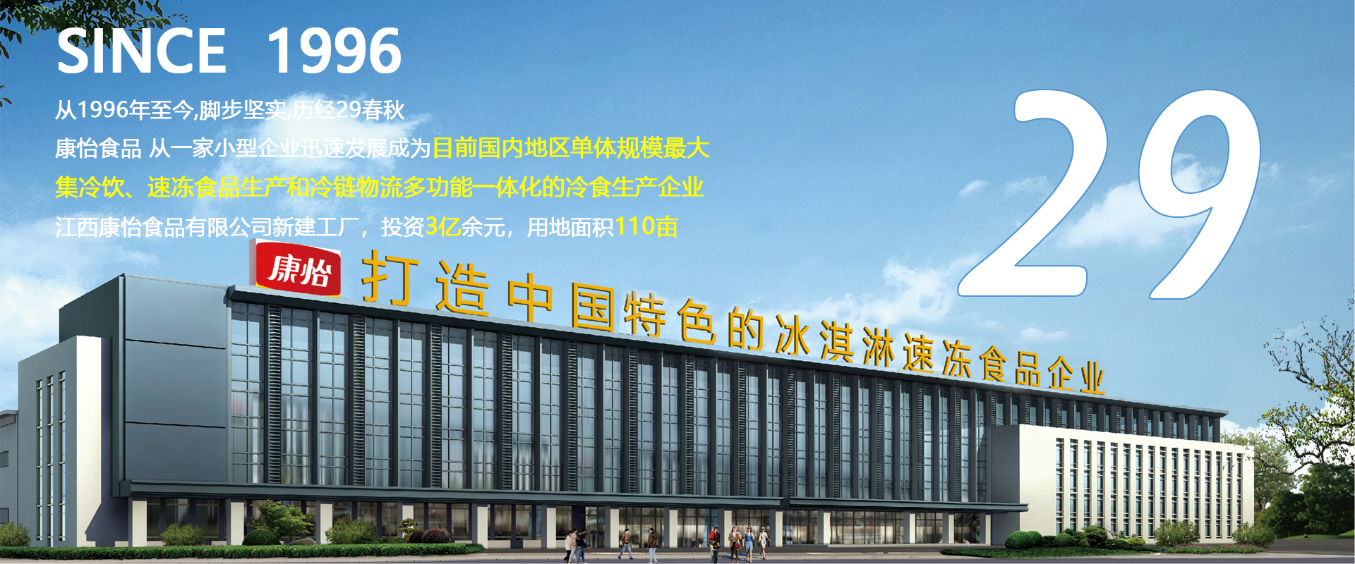 江西康怡食品有限公司始于1996年,由浙江客商投資興建,專業生產冰淇淋、雪糕、冰棒的冷凍食品生產企業。企業先后通過ISO9001、HACCP、ISO22000等多種質量體系認證,是國家質量技術監督局批準的《市場準入證》并榮獲《中國馳名商標》《江西省著名商標》、《江西名牌產品》《江西暢銷產品》、《國家高新技術企業》、《全國食品安全百佳先進單位》、《消費者最受歡迎的產品》、《誠信企業》等多項榮譽稱號。公司運行多年來,經營業績、經濟與社會效益高速增長。2019年6月,在市委、市政府的支持下,康怡公司新建集冷食生產和冷鏈物流于一體的大型現代化基地,公司座落在樟樹市藥都科技產業園,地理位置優越、交通便利,總投資3億,占地面積110畝,建筑面積7.8萬平方米;綠化率21%;容積率1.16;建筑密度54%。投產后日總產能450噸,其中,冰淇淋350噸、速凍食品100噸。年總產能5萬噸,其中冰淇淋3.5萬噸、速凍食品1.5萬噸;年產值6個億,年納稅5000多萬元。預留二期,未來可突破年總